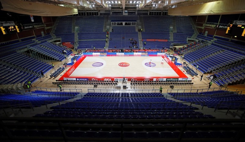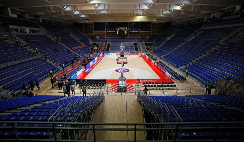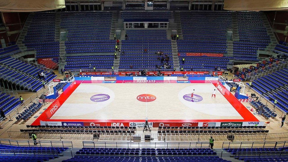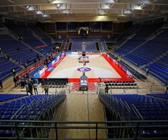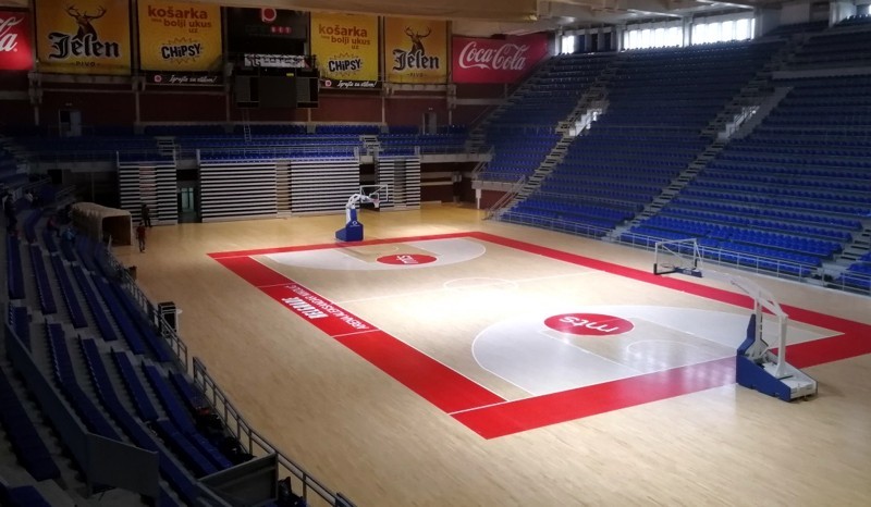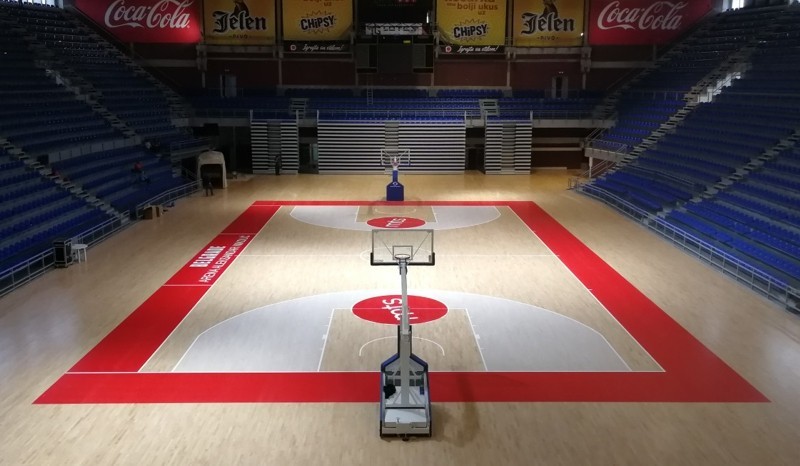 15-radové teleskopické tribúny s elektrickým skladaním v Hala Pionir - Belehrad, Srbsko
