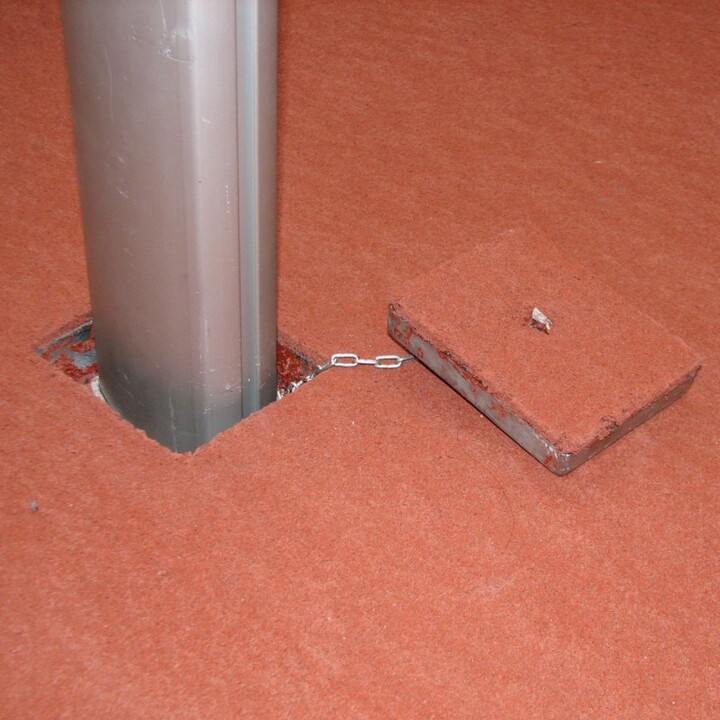 PU rám s krytom prekrývajúcim puzdro hlinikového alebo oceľového stĺpa. Určený pre montáž na vonkajšie športoviská s polyuretánovým povrchom.