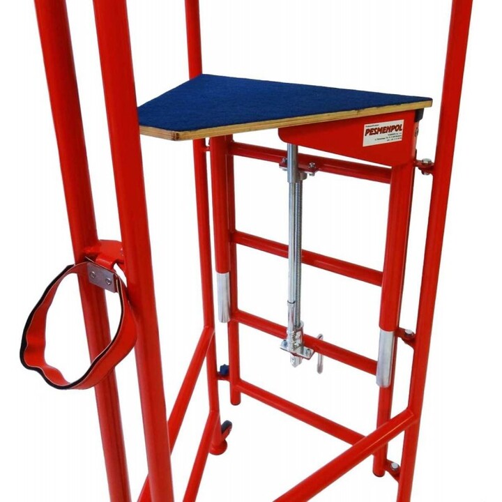 Rozhodcovské stanovište je možné skladovať v zloženom aj rozloženom stave. Umiestnenie koliesok na bočnom ráme umožňuje prepravu v oboch polohách.